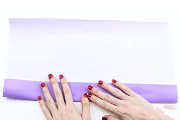 Bước 2: Gấp cạnh dưới 5cm, vuốt phẳng mép và mở ra để tạo đáy túi