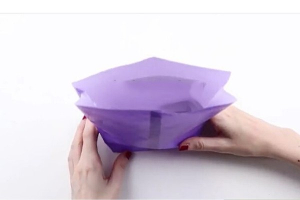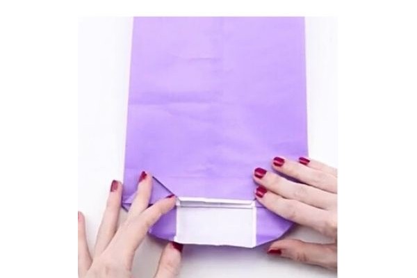 Bước 4: Sau khi keo khô gấp hai bên hồng túi như hình