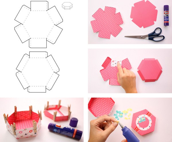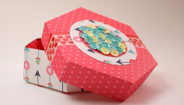 Hộp đựng quà tặng hình lục giác có cách làm cũng tương tự như hộp đựng quà hình trái tim.