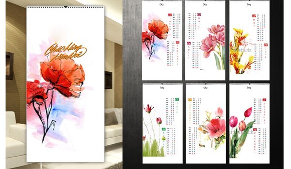 Nhờ việc xác định trước kích thước lịch treo tường muốn thiết kế nên sẽ biết được mẫu thiết kế có bao nhiêu bản và cách sắp đặt trong thiết kế như thế nào. Những loại lịch treo tường phổ biến hiện nay là: