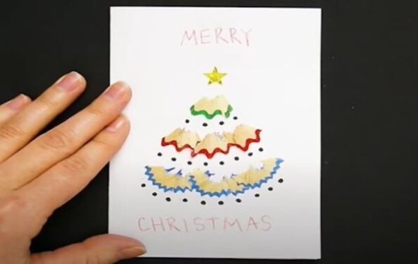 · Sau khi gọt bút chì, bạn có thể tận dụng vỏ bút chì để làm thiệp noel.